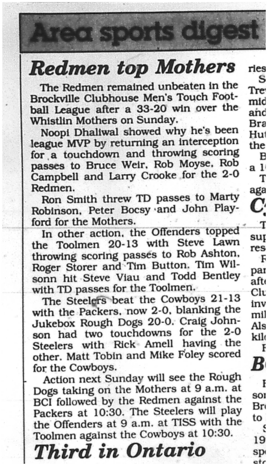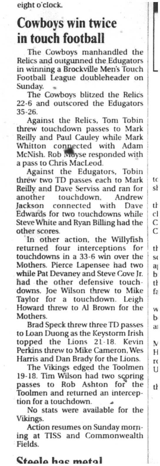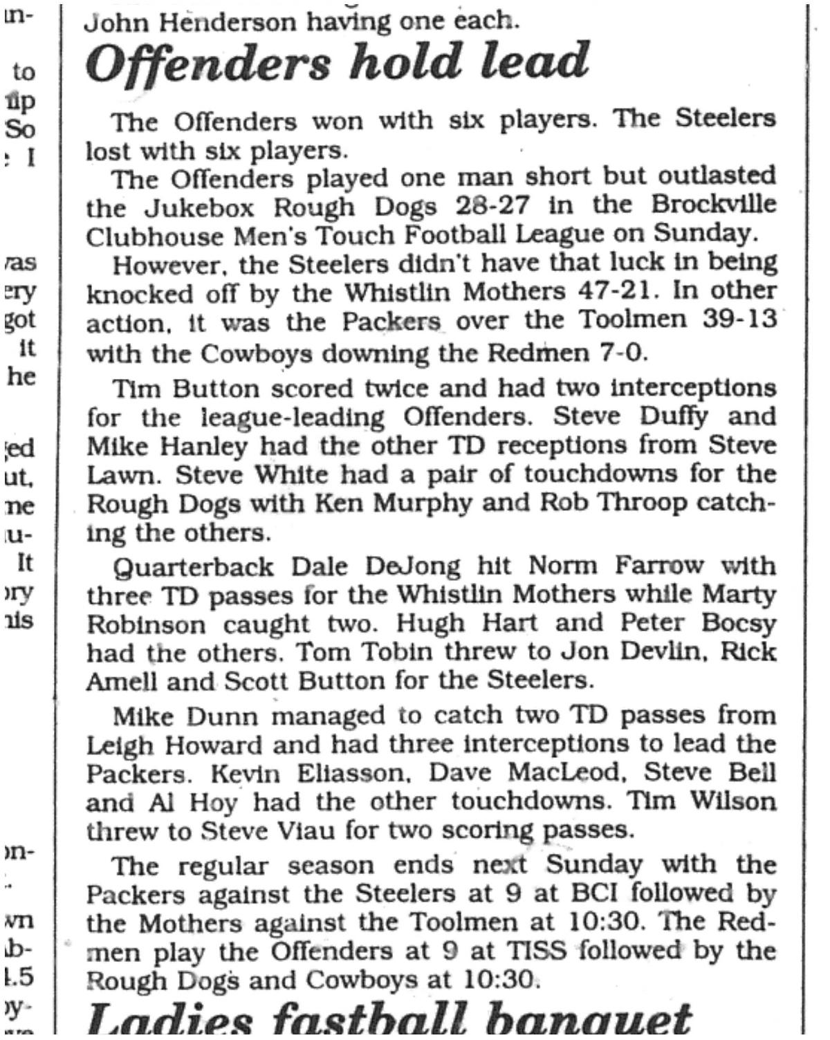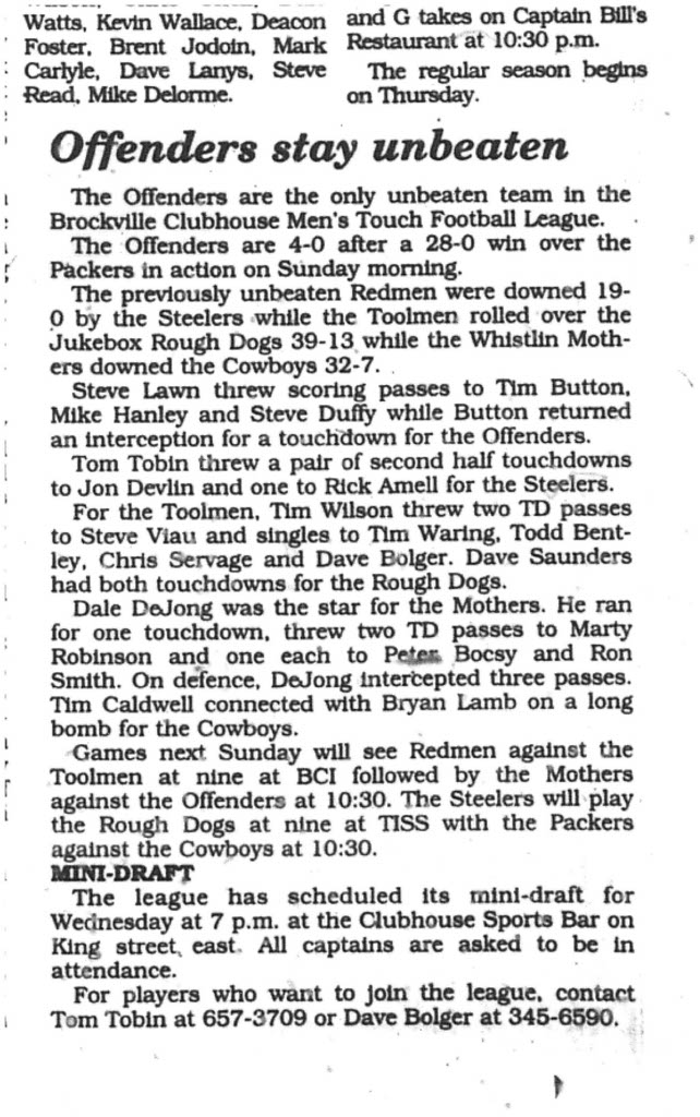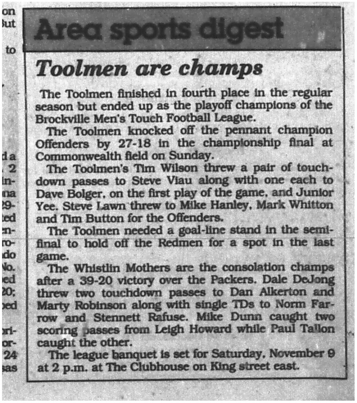 Celebrating 50 Seasons of the BMTFL – Brockville Men’s Touch Football League